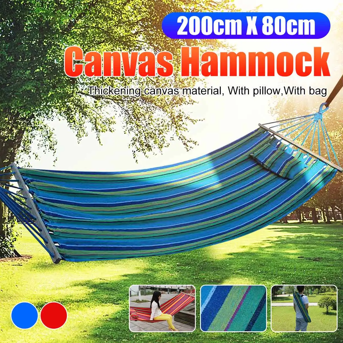 Special Offer 200 × 80センチメートルハンモックとポール屋外のキャンプ旅行ハンモック椅子スイングキャンバス睡眠ベッドガーデン裏庭家具新しい Discount (29%OFF) Today!