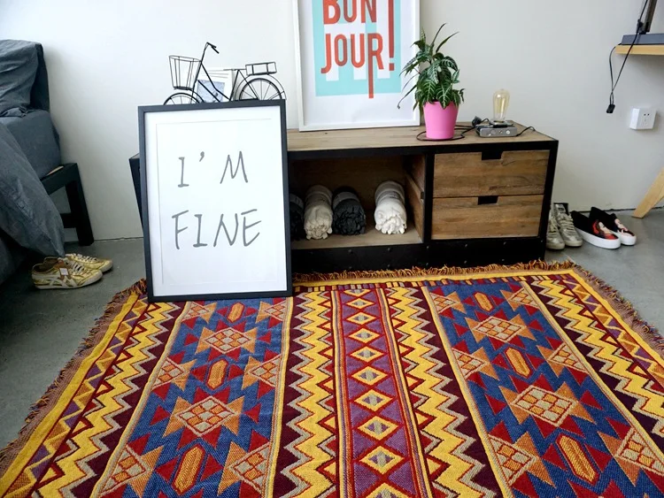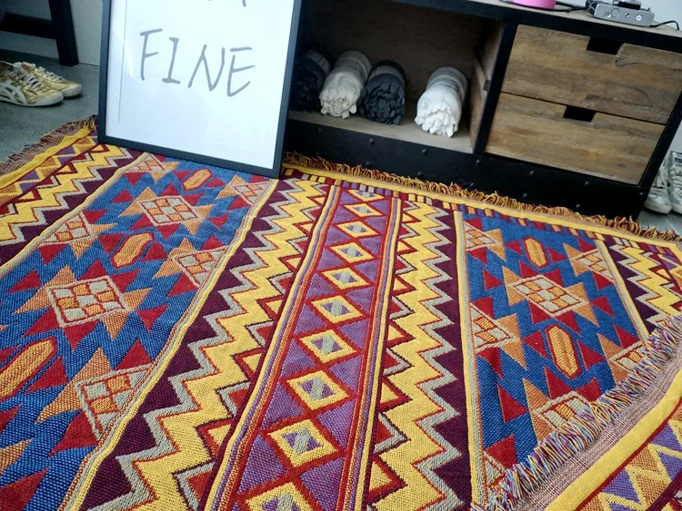 Special Offer ボヘミアンソファスローブランケット自由奔放に生きる綿ニット椅子ソファー毛布ソファタオル幾何カーペット旅行毛布 130*180 センチメートル Discount (50%OFF) Today!