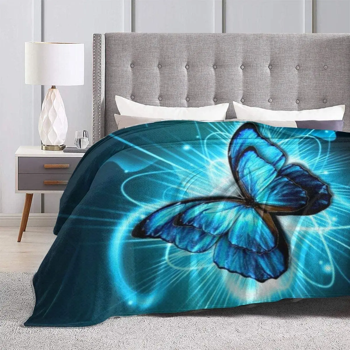 Special Offer 超ソフトで超ソフトなマイクロフリースブランケット,リビングルームのソファチェアに適した青色の蝶プリントが施された軽量フリースブランケット Discount (50%OFF) Today!