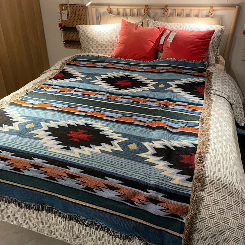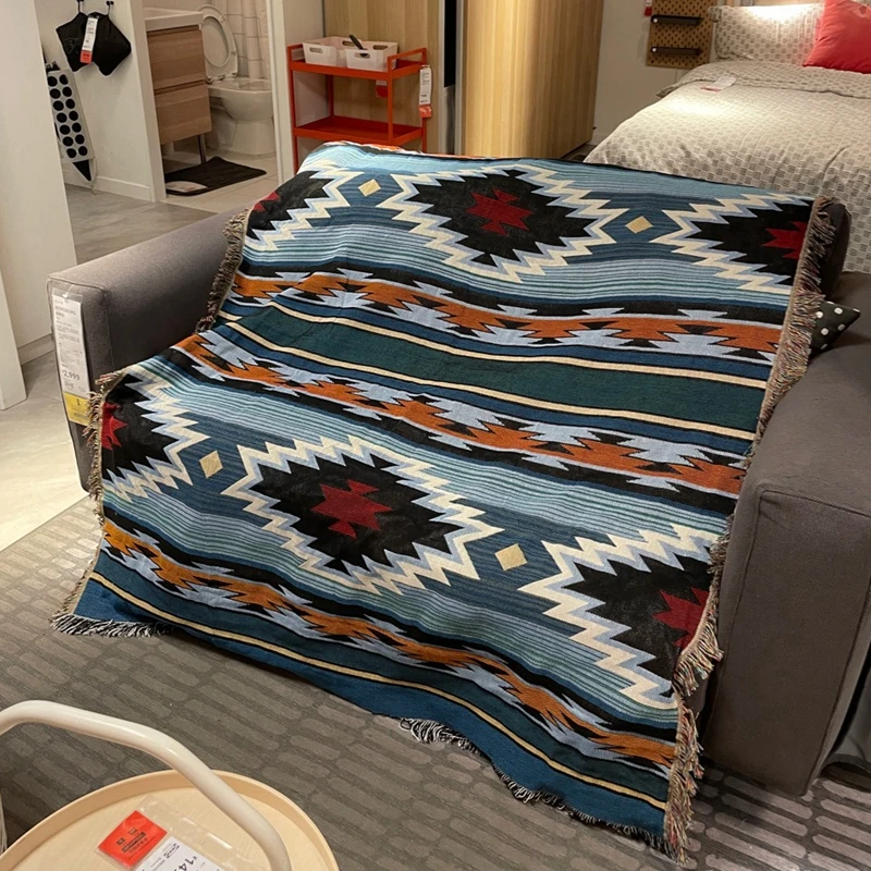 Special Offer ボヘミアン屋外ピクニックキャンプニット毛布インドエスニックスタイル幾何寝室のインテリア椅子ソファカバー大人旅行スロー Discount (36%OFF) Today!