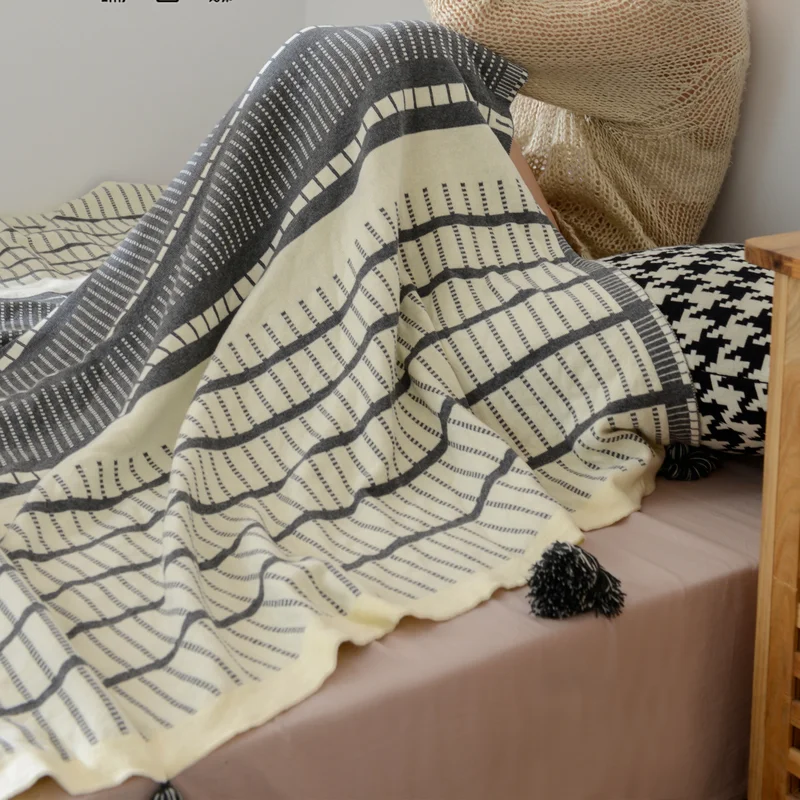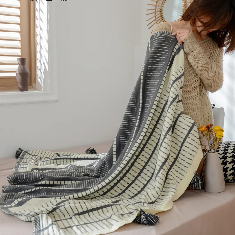 Product Name: Yiruioスローブランケットボヘミアンチェック柄ストライプタッセル付きベッドカバー,快適な屋外ソファカバー